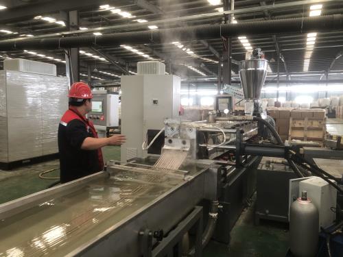 .機組運行時就適時對需潤滑傳動件進行潤滑。5.工作中如遇特殊情況需較長時間停機(如停電)應及時清理完機內(nèi)余料,以防聚合物冷卻固化后難以清除,影響到下次生產(chǎn)。6.定期清理機組各冷卻水接口處積垢(某些水質(zhì)雜質(zhì)較多,容易積垢)以免因堵塞而造成冷卻效果不良或影響溫控精度。7.電氣控制柜應每月清掃一次,以免發(fā)生短路故障。